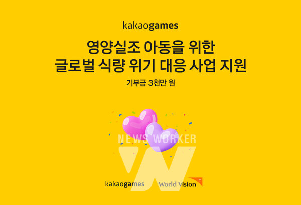 ㈜카카오게임즈(대표 한상우)는 게임 이벤트를 통해 조성된 기부금 3천만 원을 국제구호개발 NGO 월드비전에 전달했다고 7일 밝혔다.