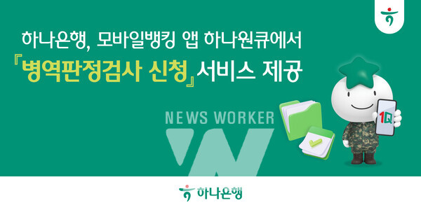 하나은행(은행장 이호성)은 정부 디지털서비스 개방 정책의 일환으로 대표 모바일 앱 ‘하나원큐’를 통해 ‘병역판정검사 신청’ 서비스를 제공한다고 밝혔다.