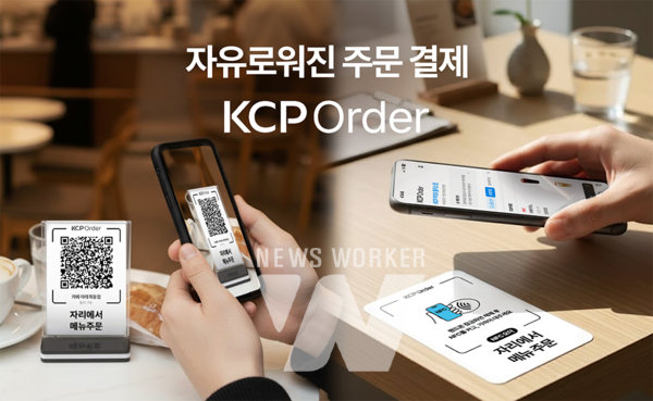 새롭게 추가된 KCP 오더는 NFC 오더와 QR 오더를 모두 지원하는 통합 주문 서비스다. NFC 오더는 스마트폰의 NFC 센서를 활용한 비접촉 주문 방식으로, NFC 태그 칩이 내장된 스티커를 테이블에 부착하는 것만으로 설치가 가능하다. QR 오더는 비대면 주문 방식으로 픽업 주문과 테이블 주문을 모두 지원하며, 부착형과 스탠드형 두 가지 형태로 매장 형태에 맞춰 설치할 수 있다.