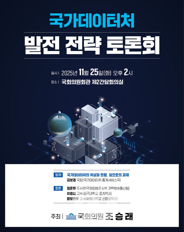 조승래 의원(대전 유성갑, 더불어민주당)이 오는 25일 오후 2시, 국회 의원회관 제2간담회의실에서 ‘국가데이터처 발전 전략 토론회’를 개최한다.