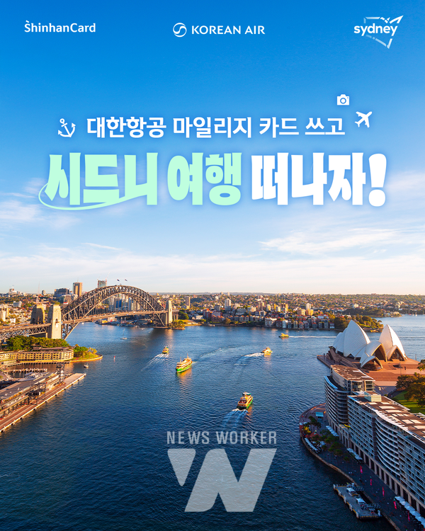 신한카드는 호주 뉴사우스웨일즈주 관광청 및 대한항공과 협력해 대한항공 마일리지 카드 고객을 대상으로 다양한 여행 이벤트를 진행한다고 밝혔다. 먼저 인플루언서와 함께하는 4박 6일 시드니 여행 이벤트를 마련해 고객이 포토 스팟 중심 여행 또는 와이너리 중심 여행 중 선호하는 콘셉트와 인플루언서를 선택해 참여할 수 있도록 했다. 당첨된 고객 8명에게는 대한항공 왕복 항공권, 숙박비, 식비 및 액티비티 비용이 지원된다.