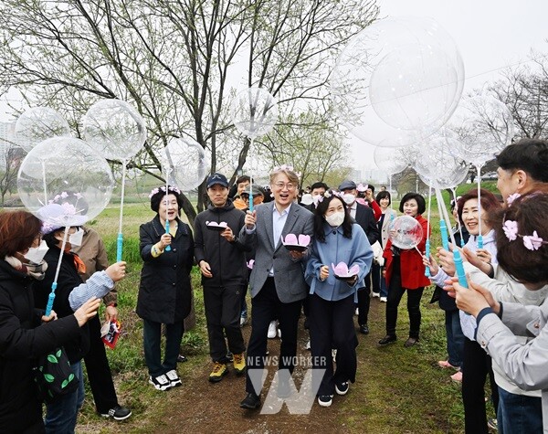 광주광역시 서구(구청장 김이강)는 지난 29일 오후 광주천변 일대에서 ‘힐링음악회 새봄’ 참석자들과 함께 ‘한 걸음 더 걷기 한마당’ 행사를 진행했다.