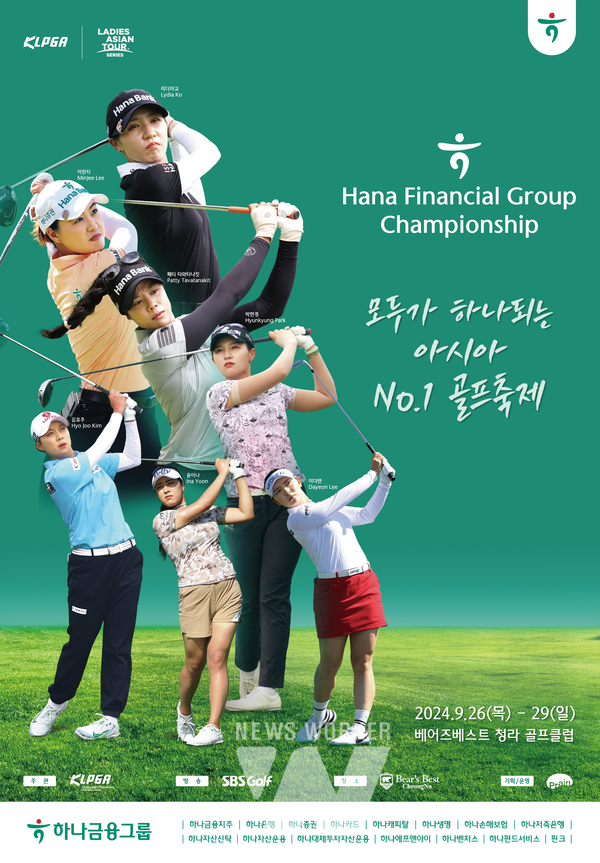 하나금융그룹(회장 함영주)은 오는 9월 26일(목)부터 4일 간 ‘베어즈베스트 청라 골프클럽’에서 KLPGA 정규투어 "하나금융그룹 챔피언십"(총 상금 15억원, 우승상금 2억 7천만원)을 개최하고, 8월 20일부터 갤러리 티켓 사전판매를 실시한다고 밝혔다.