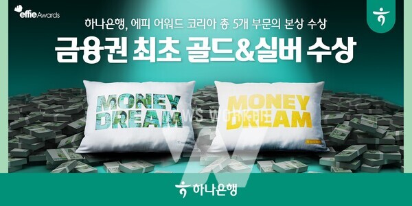하나은행(은행장 이승열)은 하나원큐 "머니드림" 캠페인이 '2024 에피 어워드 코리아(Effie Award Korea)‘에서 '브랜드 콘텐츠, 엔터테인먼트‧경험 마케팅-브랜드 콘텐츠 및 엔터테인먼트 : 제품' 부문 금상을 포함한 총 5개 부문의 본상을 수상했다고 밝혔다.