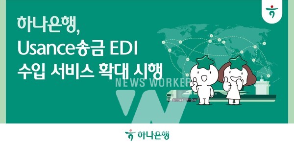 하나은행(은행장 이승열)은 수출입 기업의 편의성 증대를 위해 전자무역서비스(EDI, Electronic Data Interchange)를 통한 비대면 ‘Usance 송금’ 서비스를 시행한다고 밝혔다.
