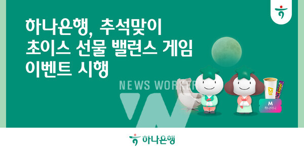 하나은행(은행장 이승열)은 민족 대명절인 추석을 맞이하여 "초이스 선물, 밸런스 게임" 이벤트를 실시한다고 밝혔다.