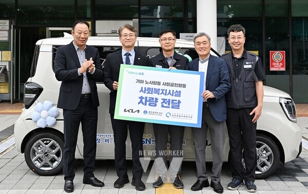 김이강 광주 서구청장은 7일 기아(주)광주서비스센터로부터 노사합동 사회공헌활동의 일환으로 레이 차량을 전달받고 감사의 마음을 전했다. 차량은 금호종합사회복지관으로 전달되어 지역돌봄체계를 구축을 위해 사용될 예정이다.