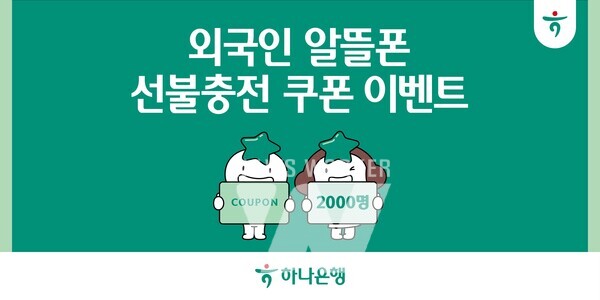 하나은행(은행장 이승열)은 외국인 손님의 국내 정착을 지원하기 위해 알뜰폰 사업자 ㈜유니컴즈(대표 정성태)와 공동으로 ‘외국인 알뜰폰 선불충전 쿠폰 이벤트’를 실시한다고 밝혔다.