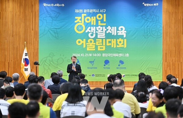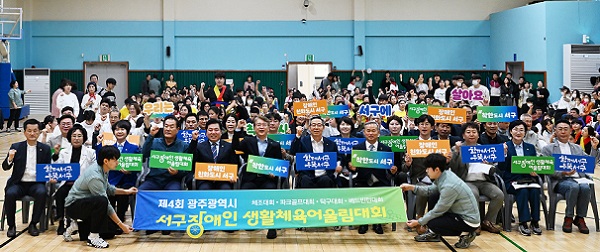 광주 서구(구청장 김이강)는 21일 오후 풍암국민체육센터에서 생활체조, 탁구, 파크골프, 배드민턴 4개종목 380여명의 선수가 참가한 가운데 제4회 서구 장애인 생활체육 어울림대회를 개최했다.