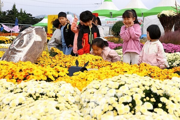 가을의 꽃, 국화가 알록달록 피었다. 덩달아 어린이들의 웃음꽃도 활짝 피어났다.
