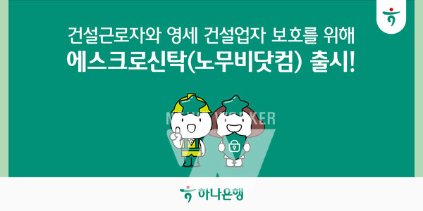 하나은행(은행장 이승열)은 건설근로자와 영세 건설업자를 보호하기 위한 전자적 대금 지급 시스템 ‘에스크로 특정금전신탁(노무비닷컴)’ 상품을 출시했다고 밝혔다.
