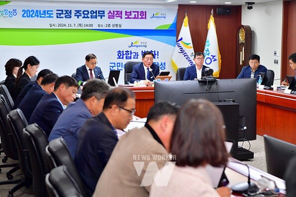 장성군이 7일 상황실에서 ‘2024년 군정주요업무 추진실적보고회’를 열었다. 김한종 장성군순 주재로 부군수, 건설산업국장, 실‧과‧소 부서장이 참석해 군정주요업무 372건에 대한 보고를 진행했다. 주요 성과, 문제점 분석 등 심도 있는 보고와 토론이 이어졌다.