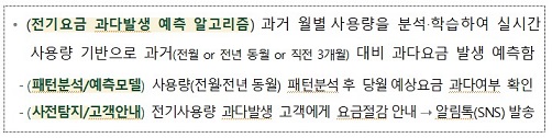 한전은 12월부터 서울과 강원 일부지역에서 주택용을 사용하는 저소득 취약계층을 대상으로 알림톡 형식의 시범서비스를 운영할 예정이며 해당가구는 10일간 전기사용량으로 한달 사용량을 예측하여 당월 전기요금이 과다하게 청구될 것으로 예상시 사용량을 절감하도록 안내받게 된다.