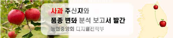농협중앙회(회장 강호동)는 농협빅데이터플랫폼(N-Hub)의 최근 8년(2016년~2023년)간의 농협 출하량과 도매시장 거래량을 분석하여 "사과 주산지와 품종 변화 분석" 보고서를 발간했다.